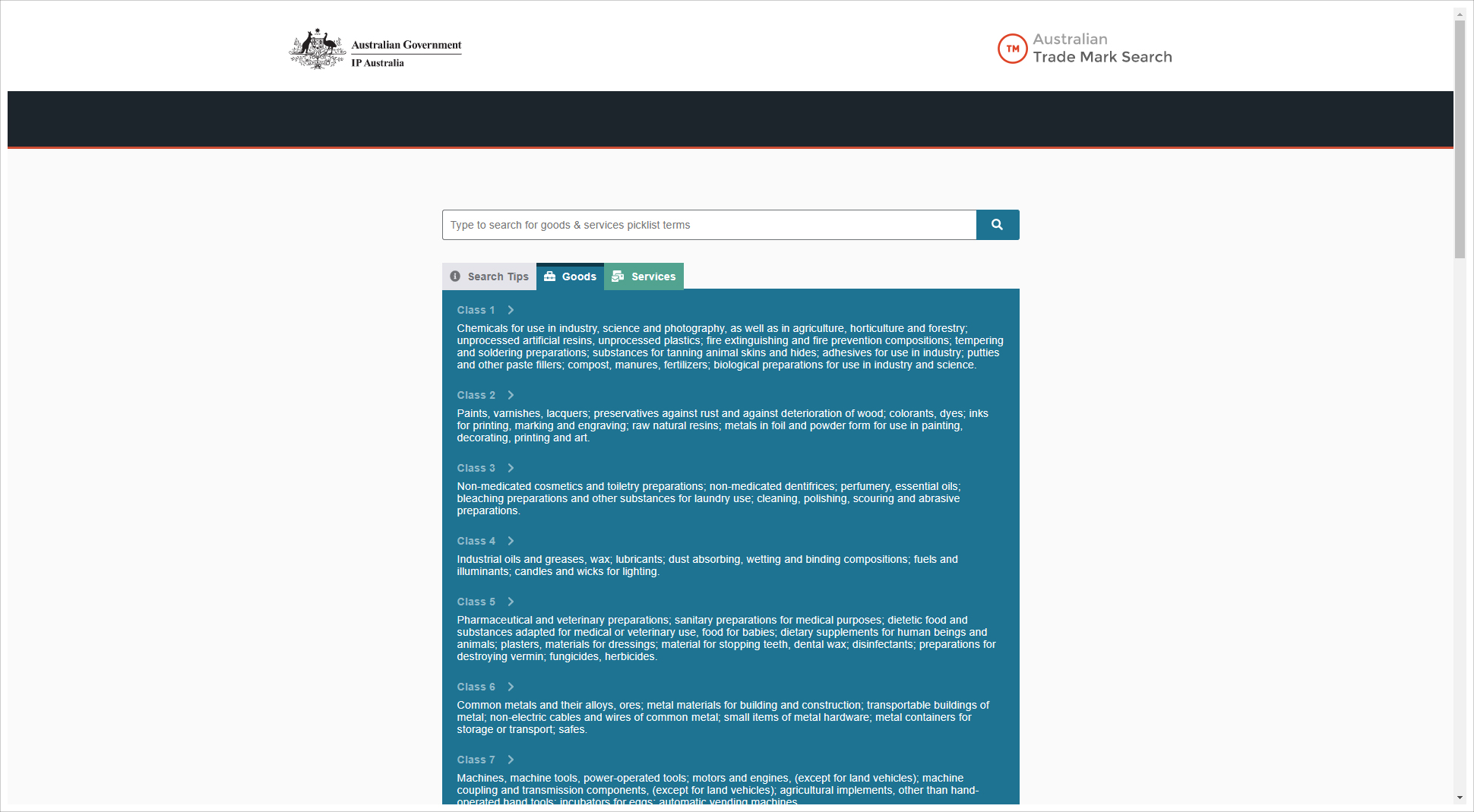澳大利亚国家采取尼斯分类,共计45个类别。